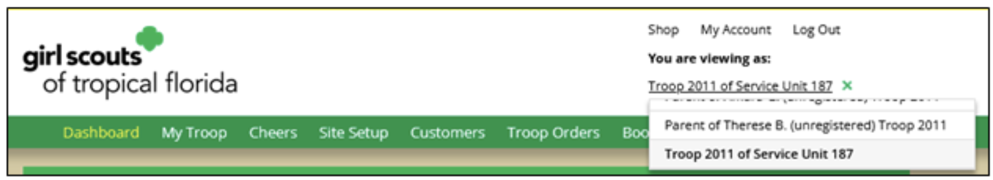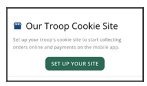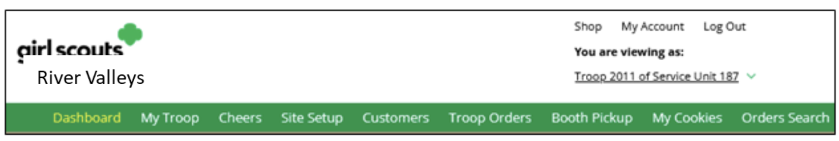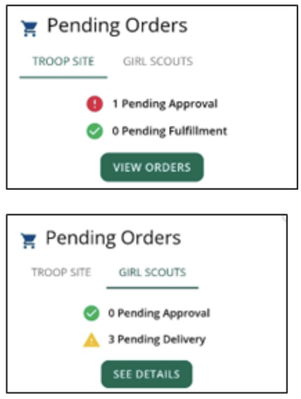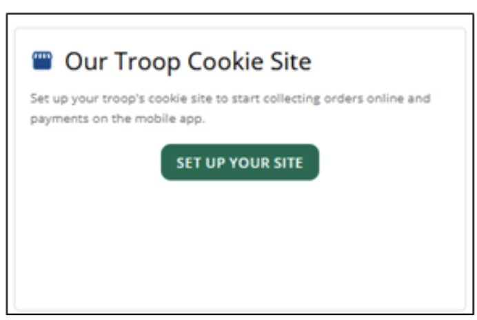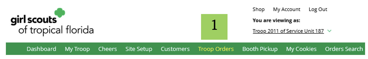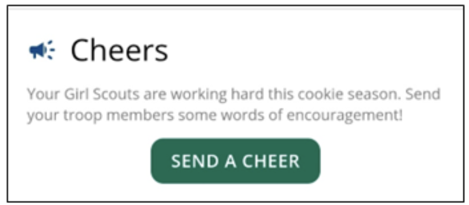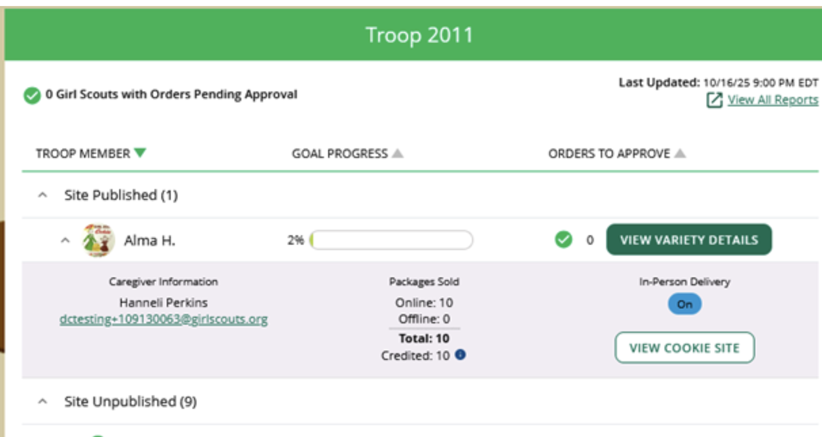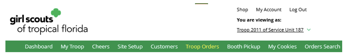 The Troop Dashboard provides an overview of all activity for your troop. Set a troop goal and watch the troop achievement bar progress as cookies are assigned to Girl Scouts in the troop. Key stats include: